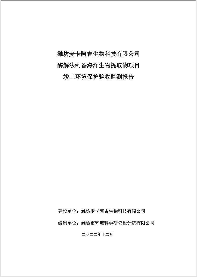 潍坊麦卡阿吉环境保护验收监测报告