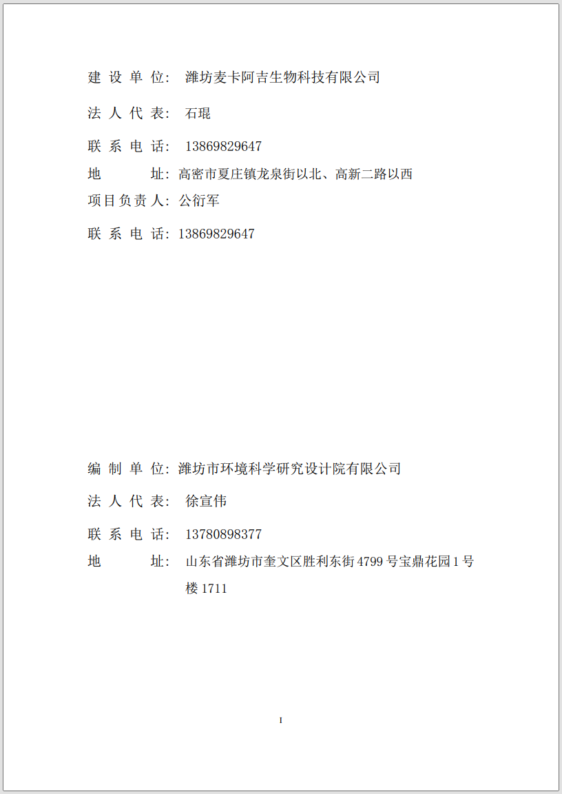 潍坊麦卡阿吉环境保护验收监测报告